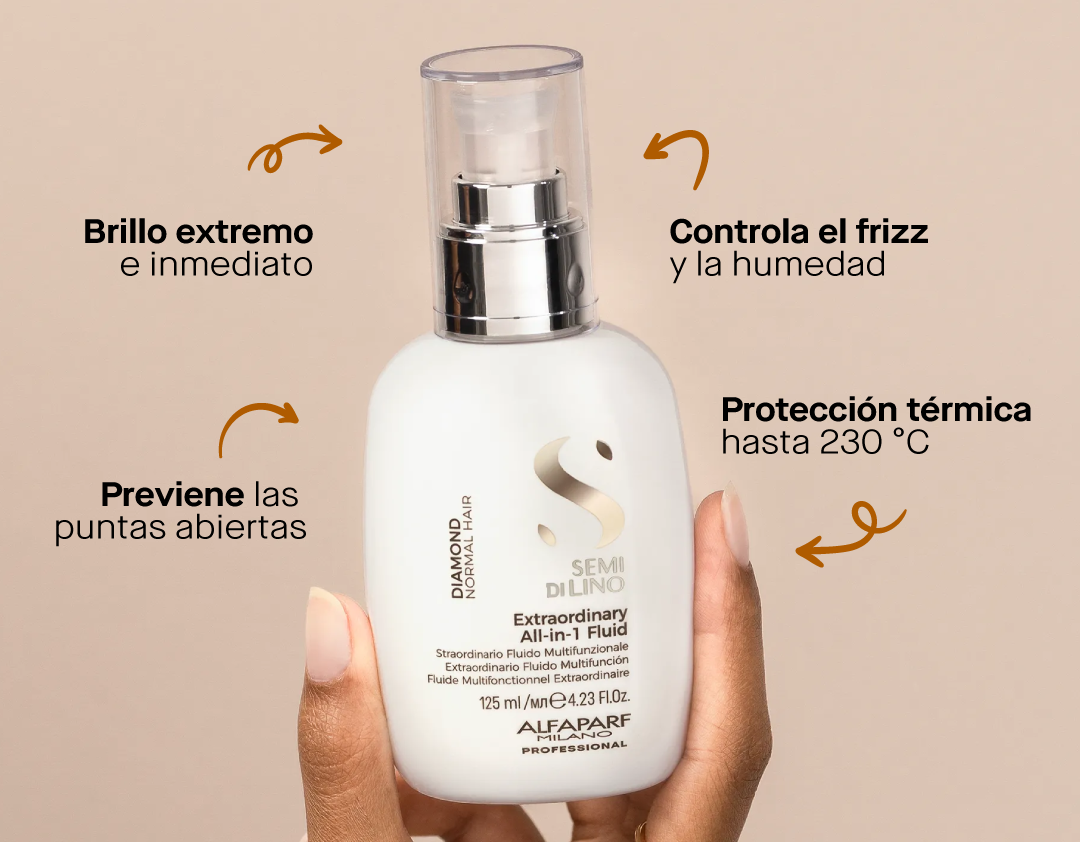 Extraordinary All-In-1 Fluid es un fluido capilar leave-in multifunción que transforma el cabello desde la primera aplicación. Su fórmula profesional revitaliza, protege y aporta un brillo extremo e inmediato, dejando el cabello suave, sedoso y lleno de vida.